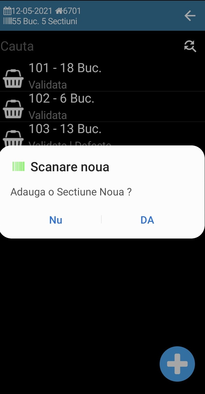 Se deschide inventarul, se adauga sectiunea si se incepe scanarea.
