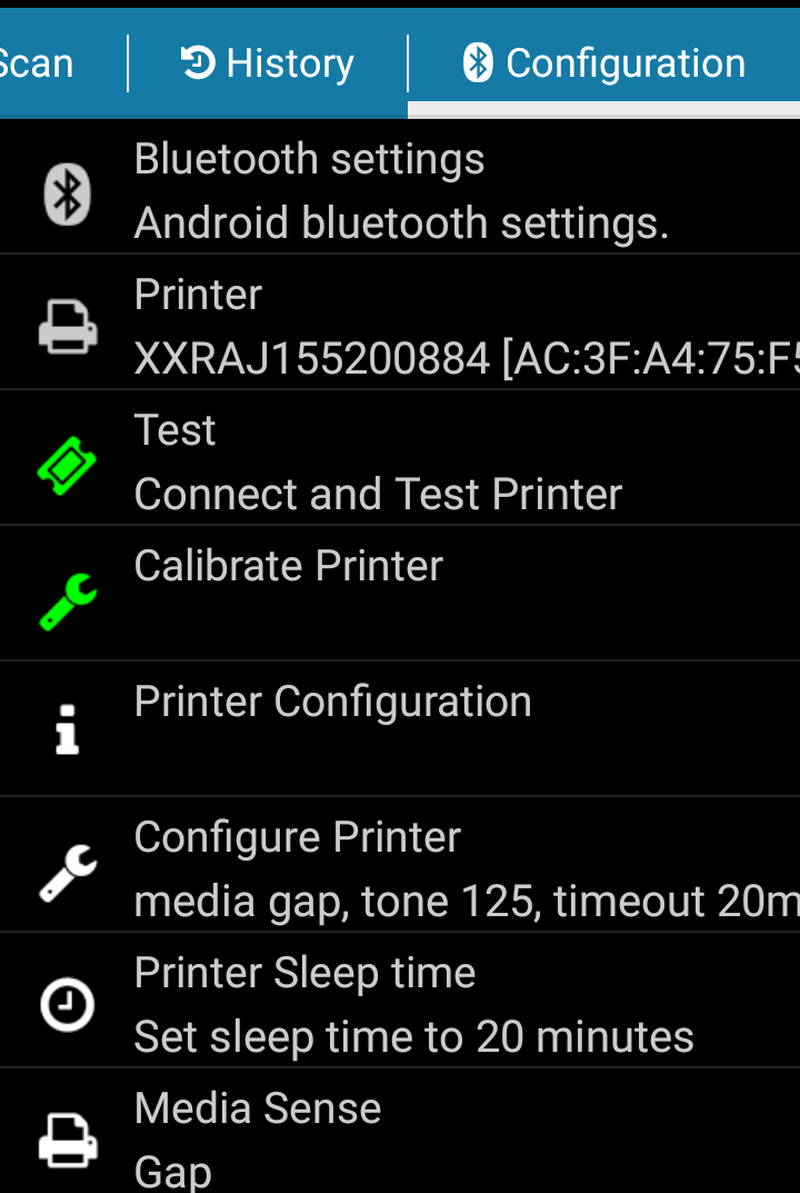 The printers calibration will always be done with the help of the scanner. Press Calibrate Printer each time the label is changed.